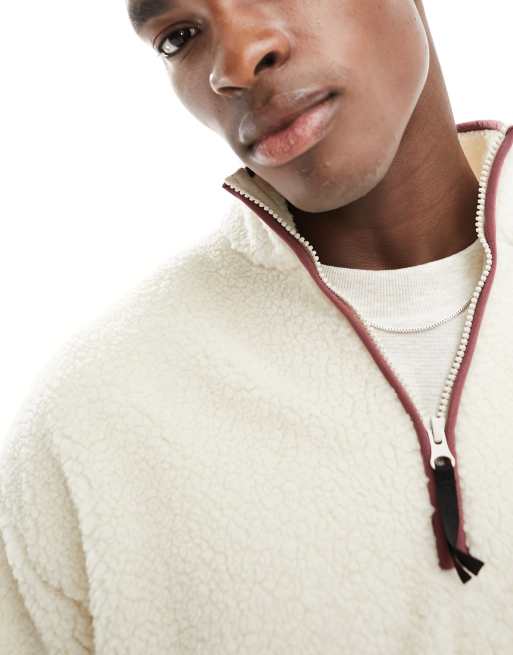 ASOS DESIGN oversized half zip borg sweatshirt in ecru with pink Very well made.