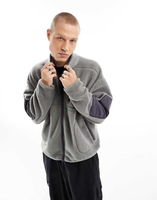 ASOS DESIGN oversized zip up track jacket with pocket detail in gray borg Very well made.