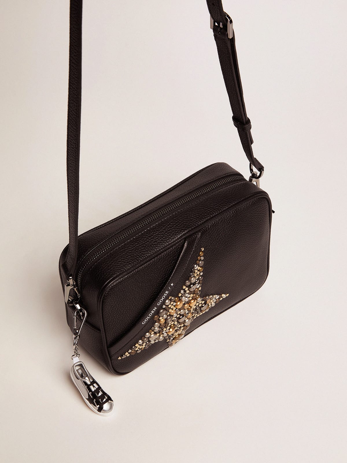 Borsa Star Bag nera in pelle martellata con stella borchiata Very well made.
