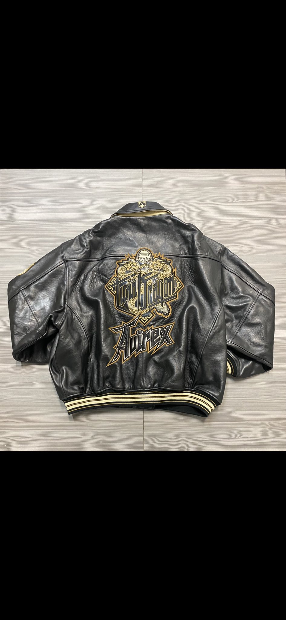 AVIREX Twin Dragon Bomber Leather Jacket Black Embroidered Very well made.