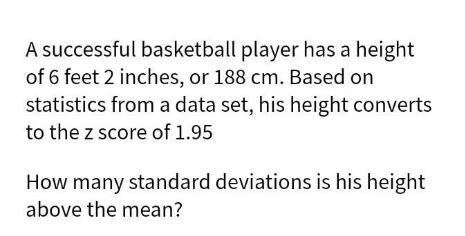 Solved A successful basketball player has a height of 6 feet Very well made.