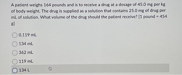Solved A patient weighs 164 pounds and is to receive a drug Very well made.