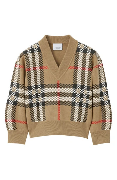 Burberry Kids Holly Basketweave Check Wool Blend Jumper In Very well made.