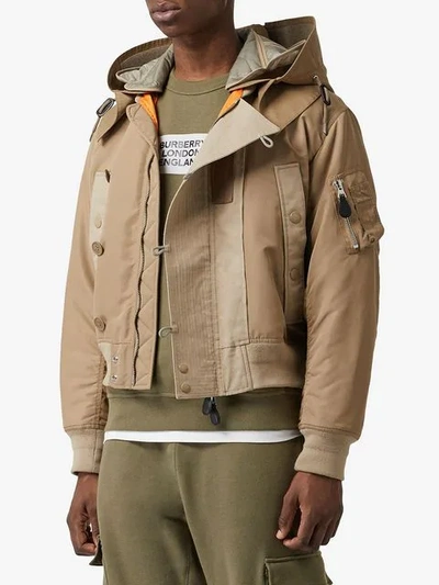 Burberry Nylon Bomber Jacket With Removable Quilted Hood In Beige Very well made.