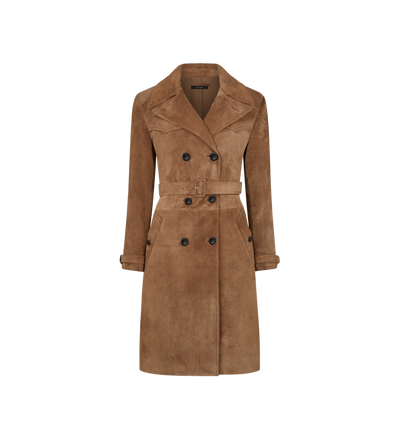 CASHMERE SUEDE DOUBLE BREASTED TRENCH COAT Very well made.