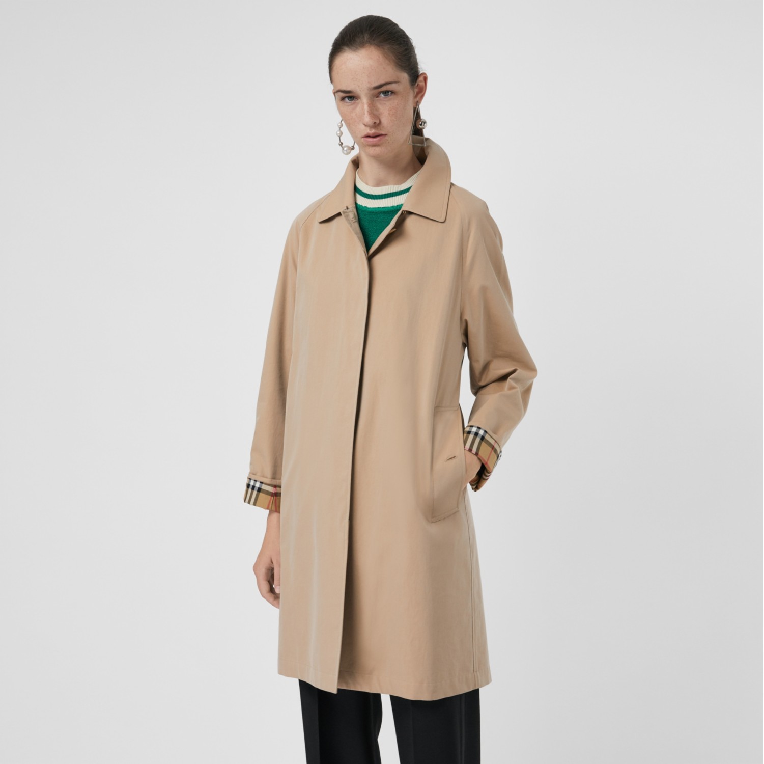 Mid length Check Hood Gabardine Car Coat in Honey Women Cotton Gabardine Burberry Official Very well made.