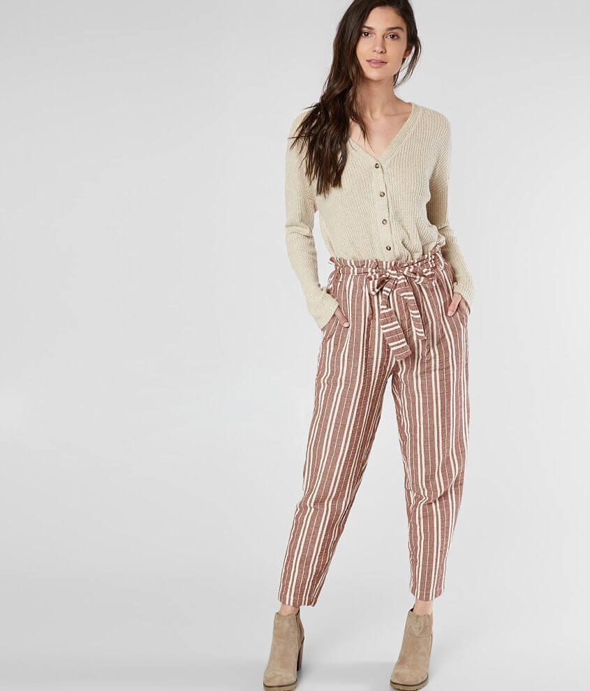 En Creme Striped Taper Paperbag Pant Women s Pants in Burgundy Very well made.