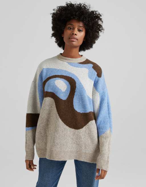 Bershka fluffy knit jumper in cream ShopStyle Very well made.