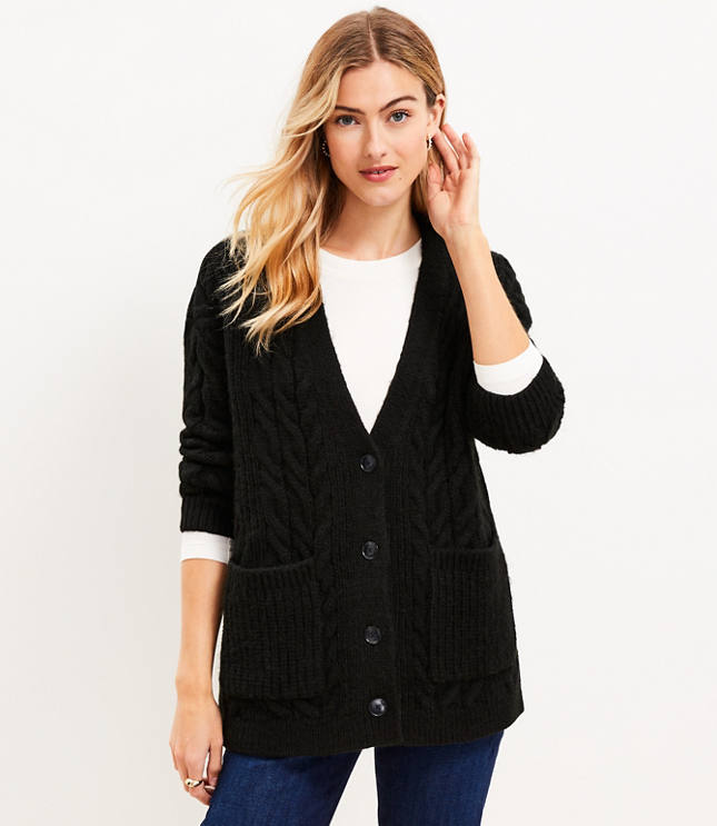 V Neck Cable Knit Boyfriend Cardigan Very well made.