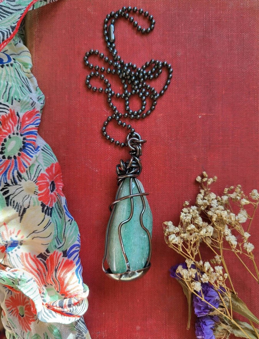 Oxidized copper wrapped cage aventurine crystal Folksy Very well made.
