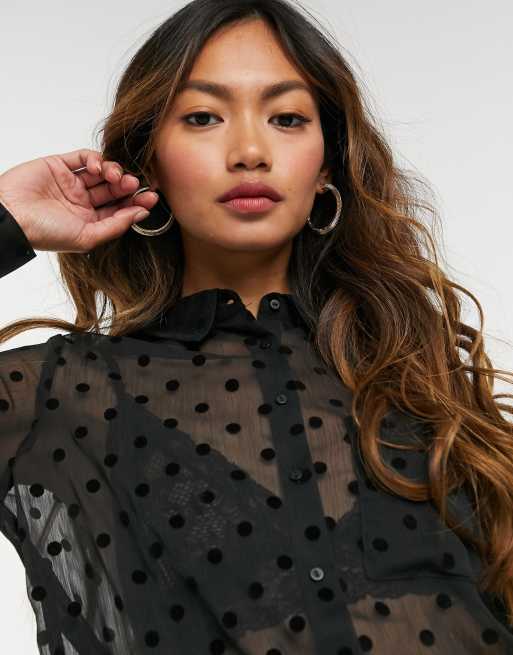 Stradivarius sheer shirt with polka dot in black Very well made.