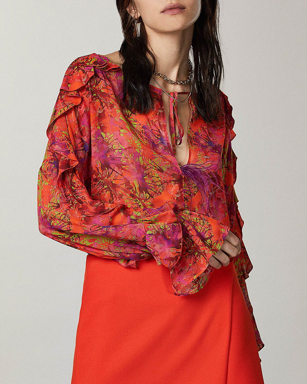 Blusa arancione in georgette a fantasia astratta dal taglio over Very well made.