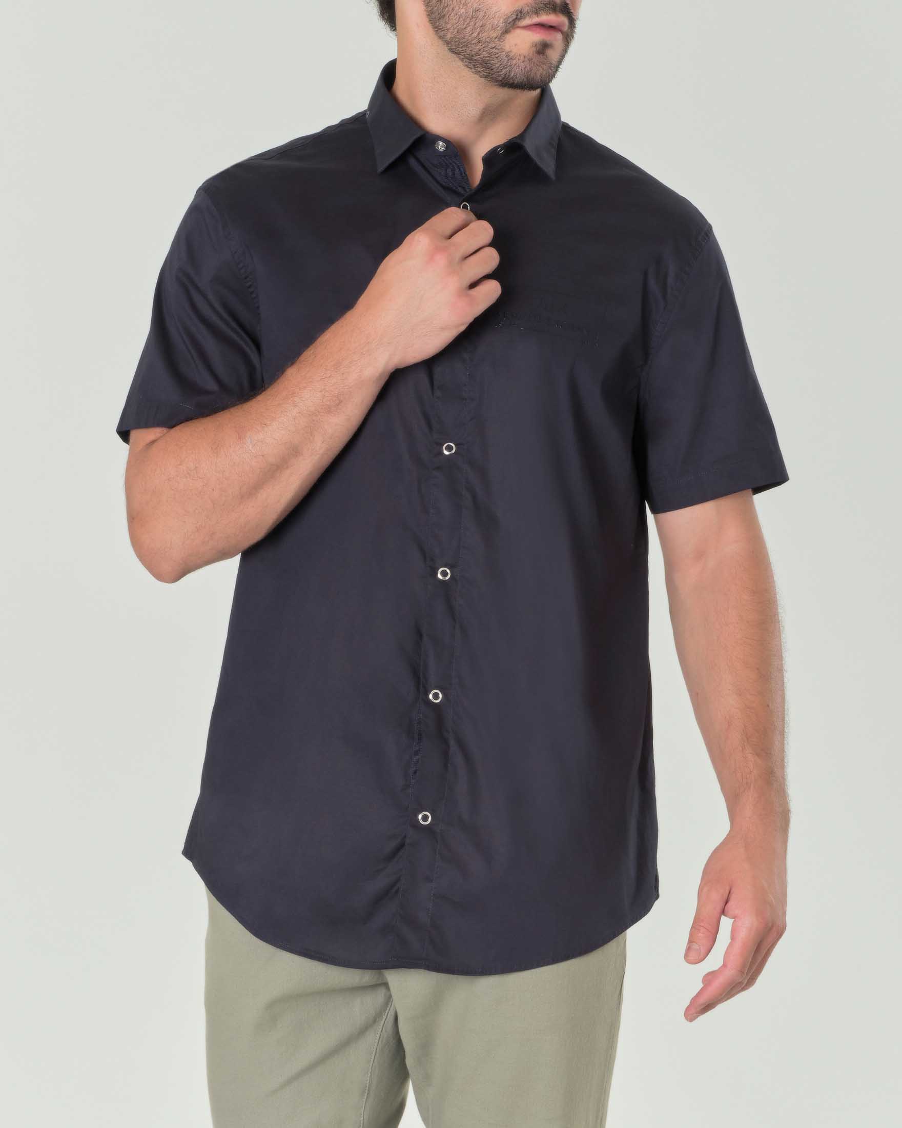 Camicia blu mezza manica in popeline stretch con logo al petto e Very well made.