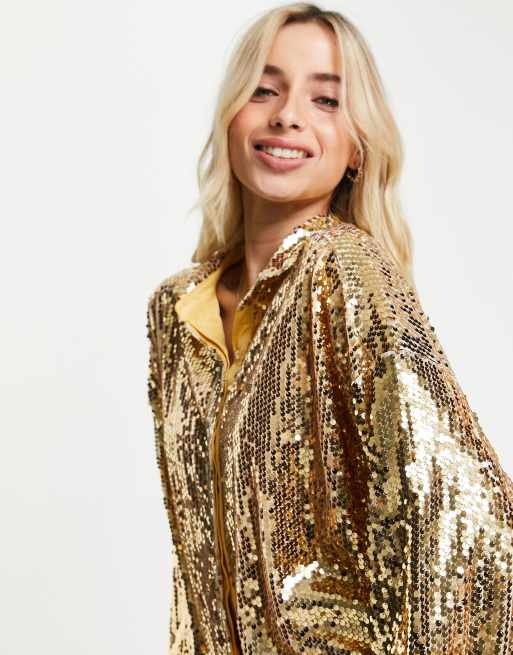 Esclusiva In The Style Camicia oversize oro chiaro con paillettes Very well made.