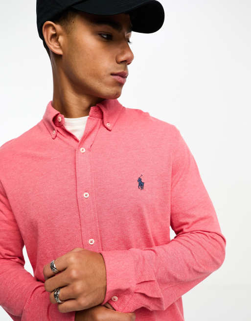 Polo Ralph Lauren Camicia in piqu rosa m lange con logo a icona Very well made.