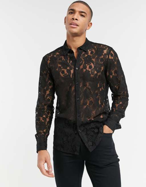 ASOS DESIGN Camicia in pizzo vestibilit classica nera Very well made.