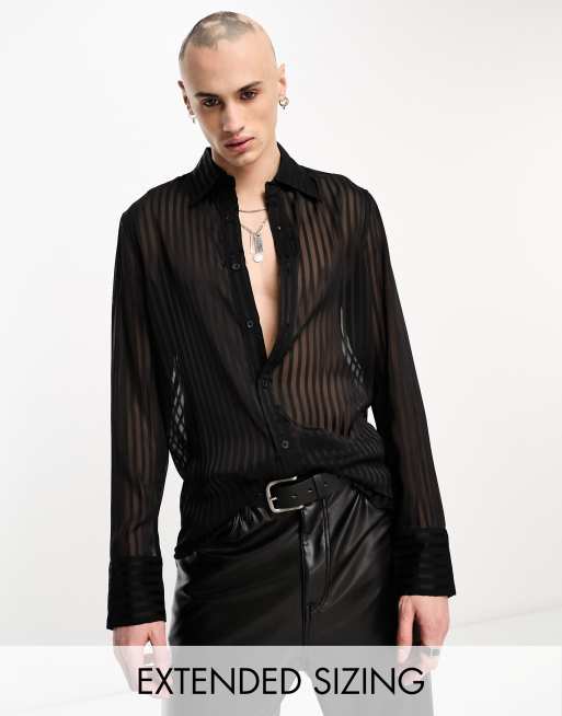 ASOS DESIGN Camicia trasparente nera a righe con colletto stile anni 70 Very well made.