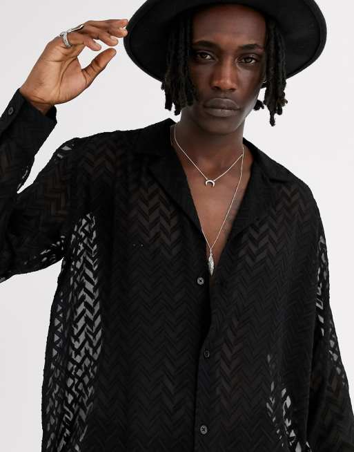 ASOS DESIGN Camicia trasparente nera a spina di pesce con rever Very well made.