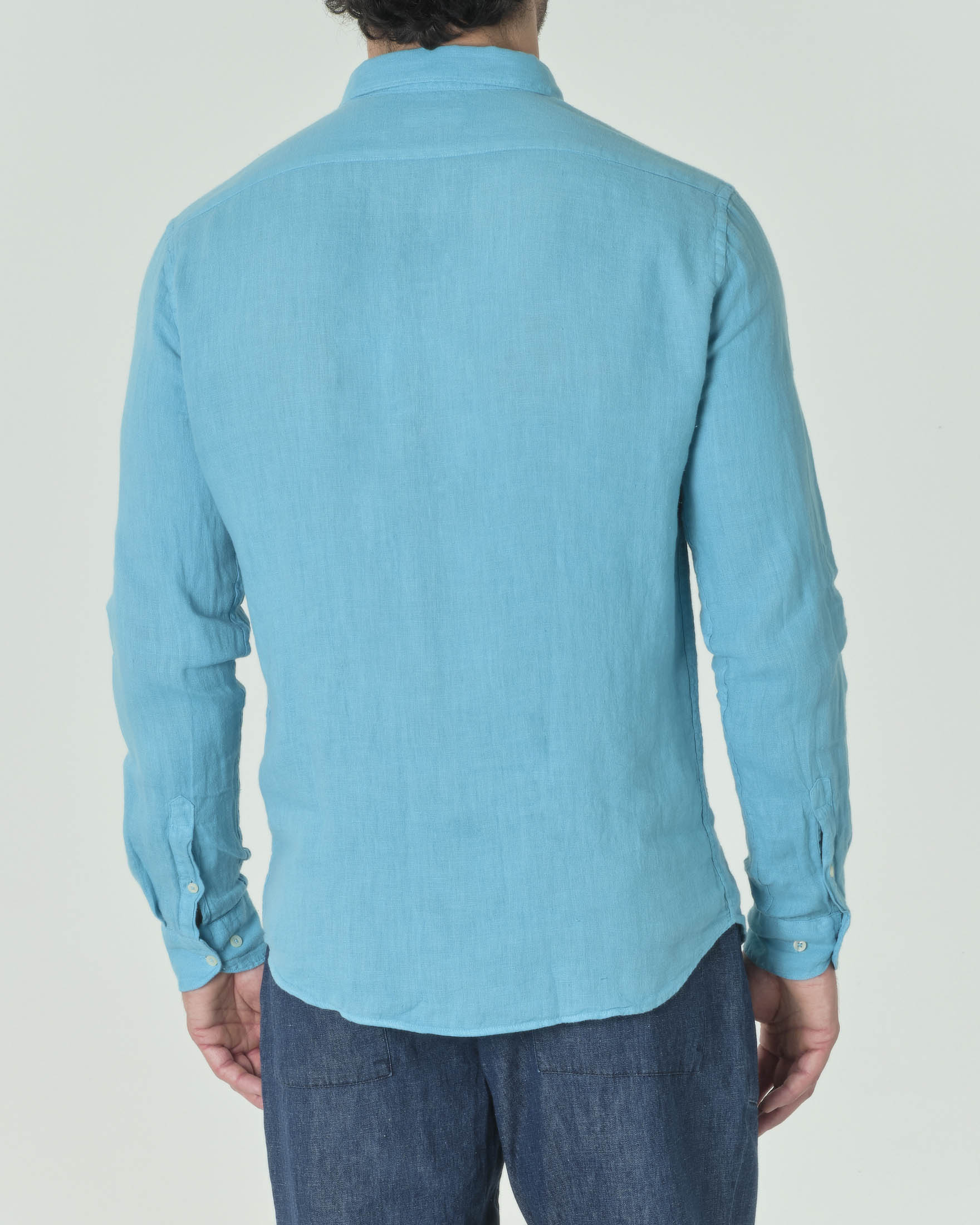 Camicia turchese in puro lino con colletto classico all italiana Very well made.