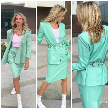 80s Mint Green pencil skirt Suit blazer S M Sweeties Vintage Very well made.