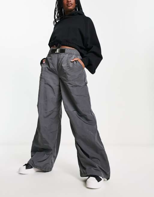 ASOS DESIGN parachute cargo pants with belt detail in techy fabric in gray Very well made.
