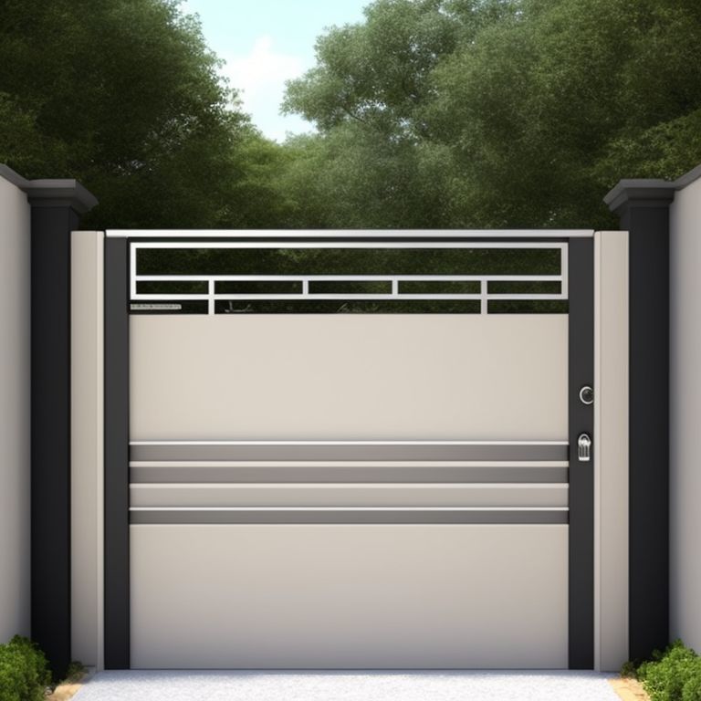 Sliding Gray Gate Steel Big Grey Metal Portal Fence on Modern Very well made.