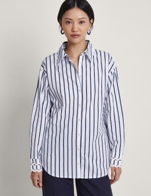 Pure Cotton Striped Collared Longline Shirt Monsoon M S Very well made.