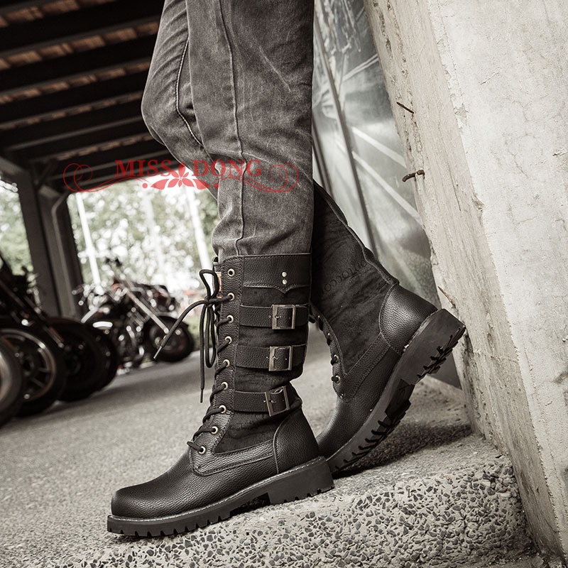 Black Punk Style Platform Men s Ankle Boots Lace up Zip Motorcycle Very well made.