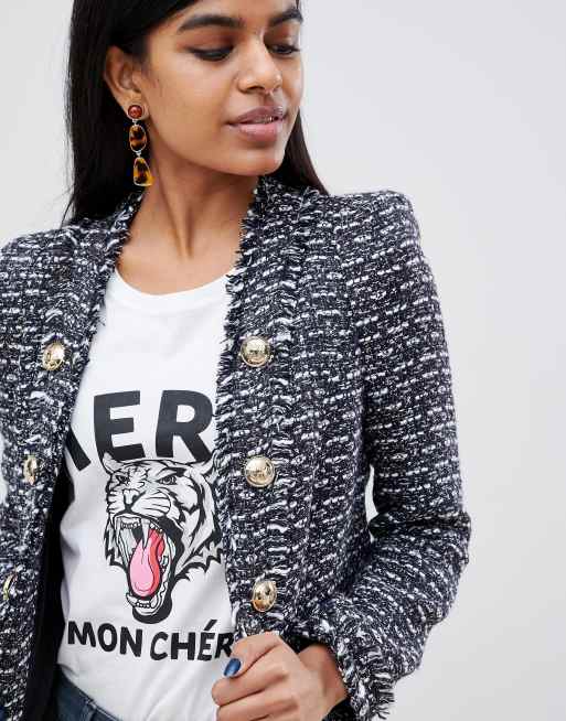 River Island Petite boucle blazer with button detail in black ASOS Very well made.