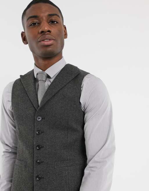 ASOS DESIGN wedding super skinny suit suit vest in wool mix herringbone in charcoal Very well made.